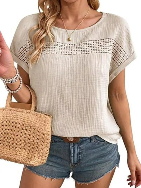 Double Take Full Size Texture Short Sleeve T-Shirt and Drawstring Shorts Set